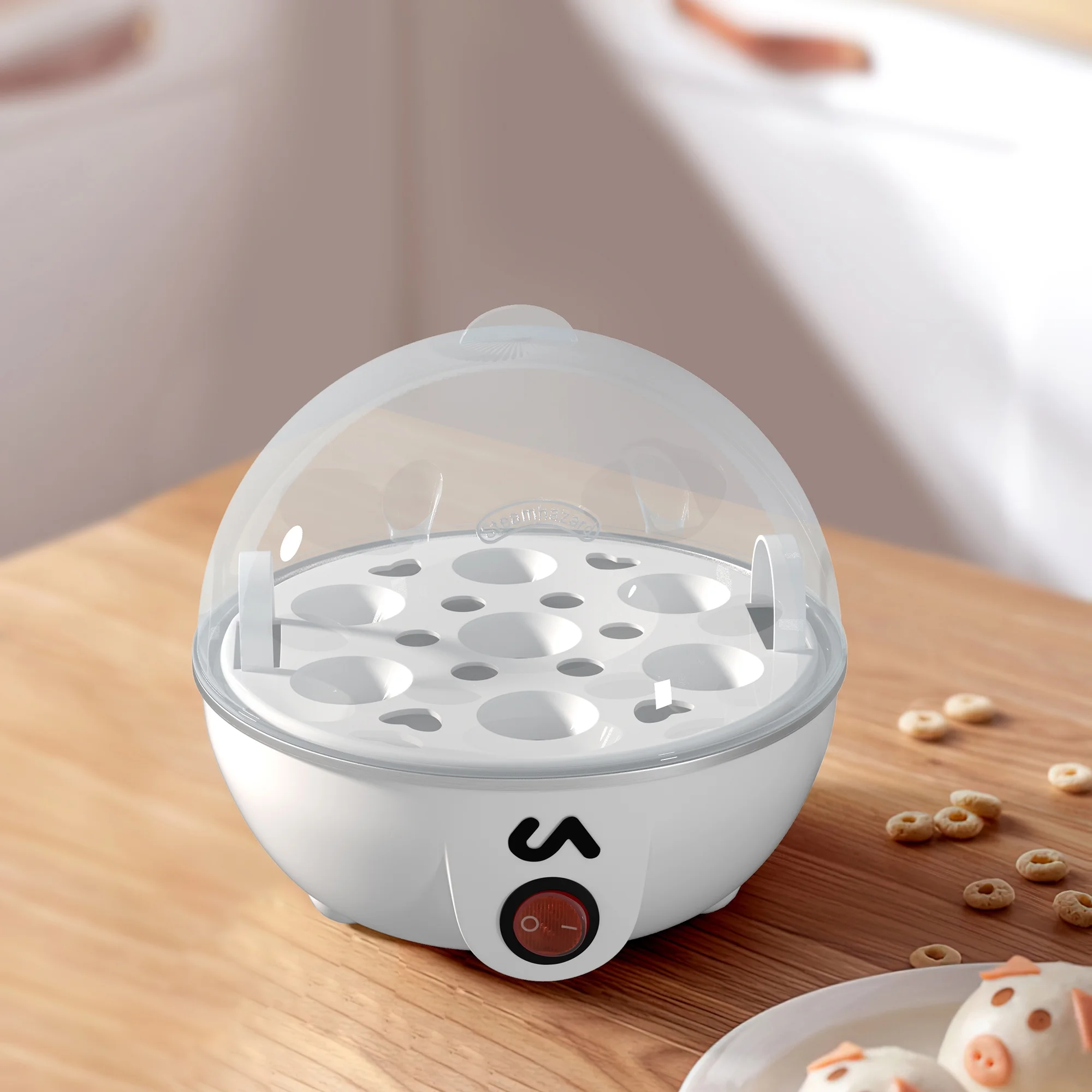 Со електричниот апарат за варење јајца, можете да сварите до 7 јајца одеднаш – меко, средно или тврдо варени, по ваш избор. Идеален е за брз појадок, салати или закуски. Едноставно ставете ги јајцата и оставете уредот да ја заврши целата работа наместо вас. Лесно се чисти, едноставно отстранете го држачот за јајца и садот и потоа исчистете го со детергент и сунѓер. Можете да ги готвите јајцата како што сакате без да додавате масло, што ви обезбедува удобност за вашиот живот. Едноставно додадете вода, ставете ги јајцата на решетката за јајца, поврзете го напојувањето и почекајте неколку минути. Апаратот за јајца е направен од материјали без БПА, кои се здрави и еколошки и безбедни за употреба.