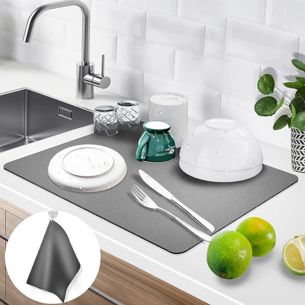 Оваа апсорбирачка подлога е идеална за секојдневна употреба. Апсорбирачката подлога за цедење на садови е неизоставен дел од вашата кујна. Оваа иновативна подлога е специјално дизајнирана да ја апсорбира водата од свежо исцедени садови, овошје и прибор, што ја прави идеален избор за вашата секојдневна употреба. Со својата висококвалитетна изработка, оваа подлога е направена од специјални микрофибри кои ги задржуваат капките вода и ги сушат брзо. Ова значи дека нема да имате проблеми со оставање на влага на вашите површини, што го чини вашиот кујнски простор подреден и чист. Одличната апсорпција на оваа подлога значи дека ќе можете да ја користите повеќе пати пред да ја перете. Ова значи помалку време и напор потребен за одржување на вашата кујна чиста и средена. Додека ја користите, ќе забележите дека подлогата не го губи квалитетот и ефикасноста, што значи дека ќе ви служи долготрајно.