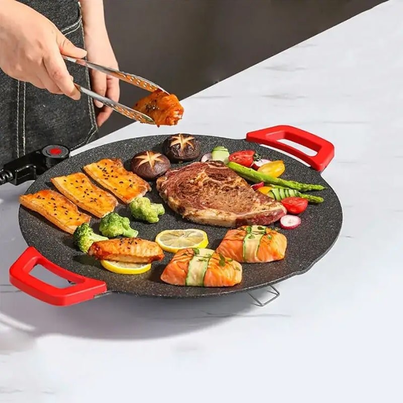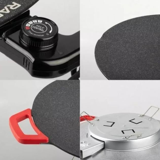 Тавата е изработена од керамичка нелеплива плотна, со која ќе го зготвите јадењето рамномерно и за многу брзо време. Бидете вистински професионалец во готвењето со оваа електрична керамичка тава од брендот RAF и подгответе ги омилените јадења на вашето семејство и пријателите. Може да ја користите во вашиот дом и градина, се што треба е да имате само напојување за електрична енергија. Дизајнирана е да може да се вклопи дирекно на вашата трпеза, на дното е подигната на ногарки, има силиконски рачки кои се безбедни на допир и термостат кој може да го извадите. Јачината на тавата е 1800w и има термостат од 5 нивоа со кои се реулира топлината на тавата. Нејзината големина од 36см дијаметар е погодна за подготовка на храна за целото семејство како риба, месо, зеленчук и сл.