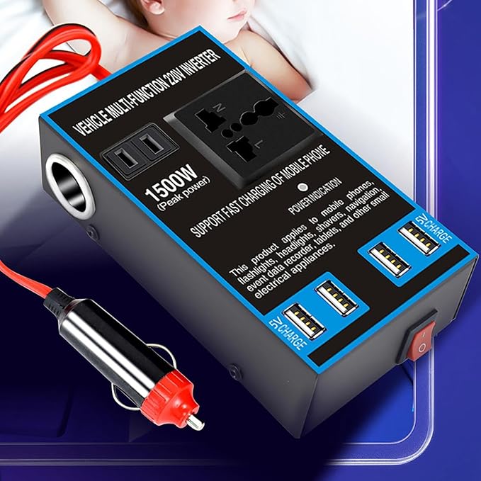 Инвертерот за напојување на автомобилот ја претвора DC-моќта од вашето возило во AC-моќ, овозможувајќи ви да користите стандардни апарати за домаќинство во движење. Со повеќе излезни интерфејси, овој автомобилски инвертер за напојување е разноврсен и може да користи разни електронски уреди како лаптопи, паметни телефони, таблети и звучници. Останете и напојувајте се каде и да сте. Дизајниран за секој кој има потреба од сигурен и удобен извор на енергија додека патува или на пат. Совршен за патувања, кампување, службени патувања и итни ситуации. Без разлика дали ви треба на вашиот лаптоп, пуштате музика преку звучниците на вашиот автомобил или го одржувате паметниот телефон вклучен, овој инвертер за напојување во автомобил е совршен придружник за сите ваши електронски потреби. Уживајте во удобноста и мирот што ги носи со стабилно и ефикасно напојување во вашето возило. Кажете им збогум на испразнетите батерии и уживајте во непрекинато напојување на сите ваши уреди.