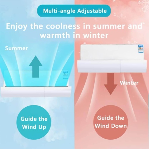 Штитникот за клима уред е иновативен производ кој ќе ве заштити од директниот ладен/топол воздух на вашиот клима уред. Со својата висококвалитетна изработка и функционални карактеристики, овој штитник е неизоставен додаток за секој дом или бизнис простор. Револуционерен приспособлив практичен дизајн, изработен од високо квалитетна АБС пластика, универзален е и може да се постави на било кој клима уред без разлика на марката и типот. Прилагодливи димензии во зависност од потребата, должината се регулира со леснотија (58-108cm)